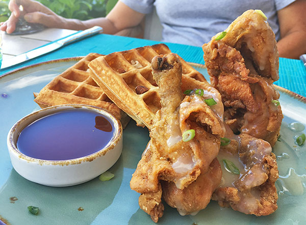 Ketel One vodka is infused with beetroot overnight. The vibrant vodka is then mixed with mango and lime, resulting in a delightfully smooth cocktail with a slightly sweet flavor. Brunch eats include the decadent Chicken & Waffles served with a rum-maple syrup...