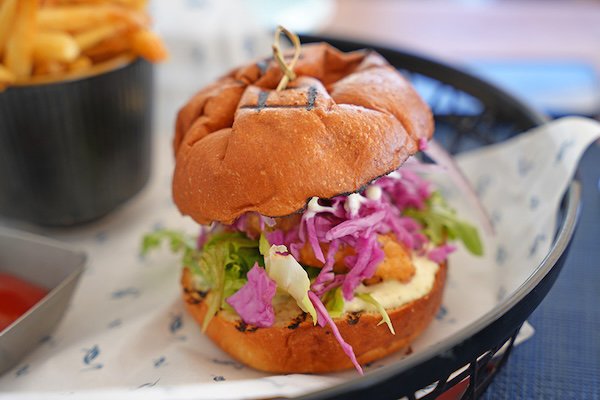 For lunch, the menu spans everything from wood-fired pizzas and fresh seafood to hearty mains and vibrant salads. Highlights include Margherita and Vegetariana pizza, fresh ceviche, tuna tartare, coconut curry seafood, grilled crayfish, and indulgent desserts like the signature Aurora Crème Brûlée. We could not resist the Tempura Fish Sandwich...
