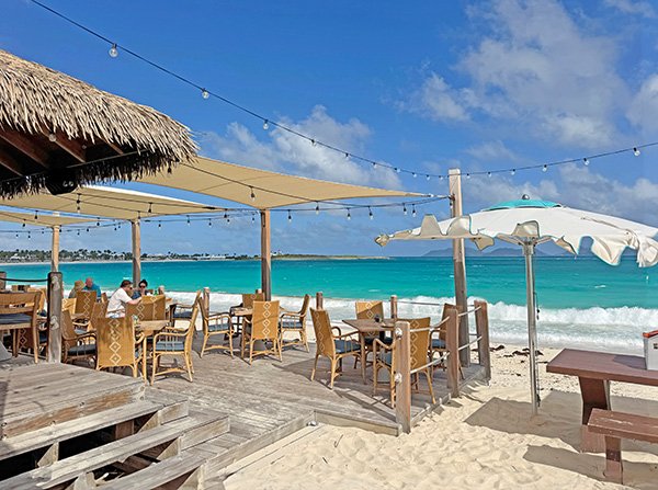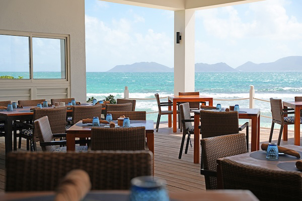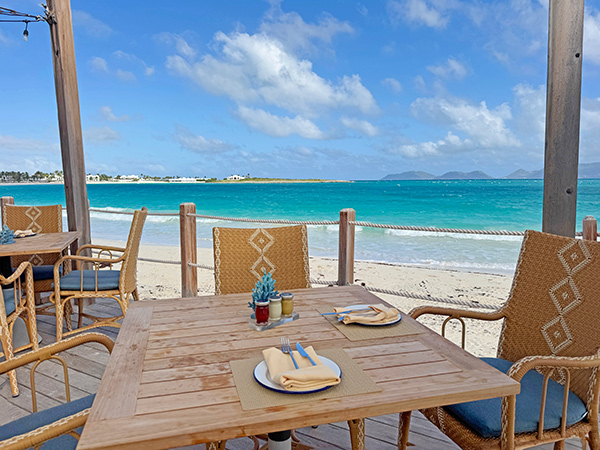 Today the restaurant has an open-air deck with comfortable tables and chairs overlooking the beach. The atmosphere is effortlessly relaxed as the sea breeze flows freely and the views of St. Martin in the distance are simply spectacular.
