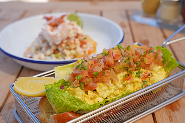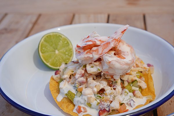 Fresh conch, shrimp and octopus are tossed with lime, cucumber, tomatoes and creamy avocado. It is bright, refreshing and full of ocean flavor! Seafood lovers will also want to try the Sandy Ground lobster roll.