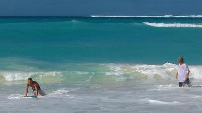 The waves are enormous here in December and January. Too bad for Dad, but we still had fun jumping into the waves, trying to ride them all the way in.